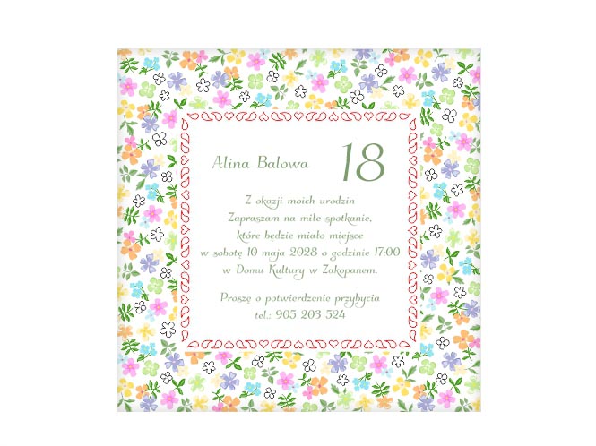 Zaproszenie na 18-te urodziny Kwiaty polne 18